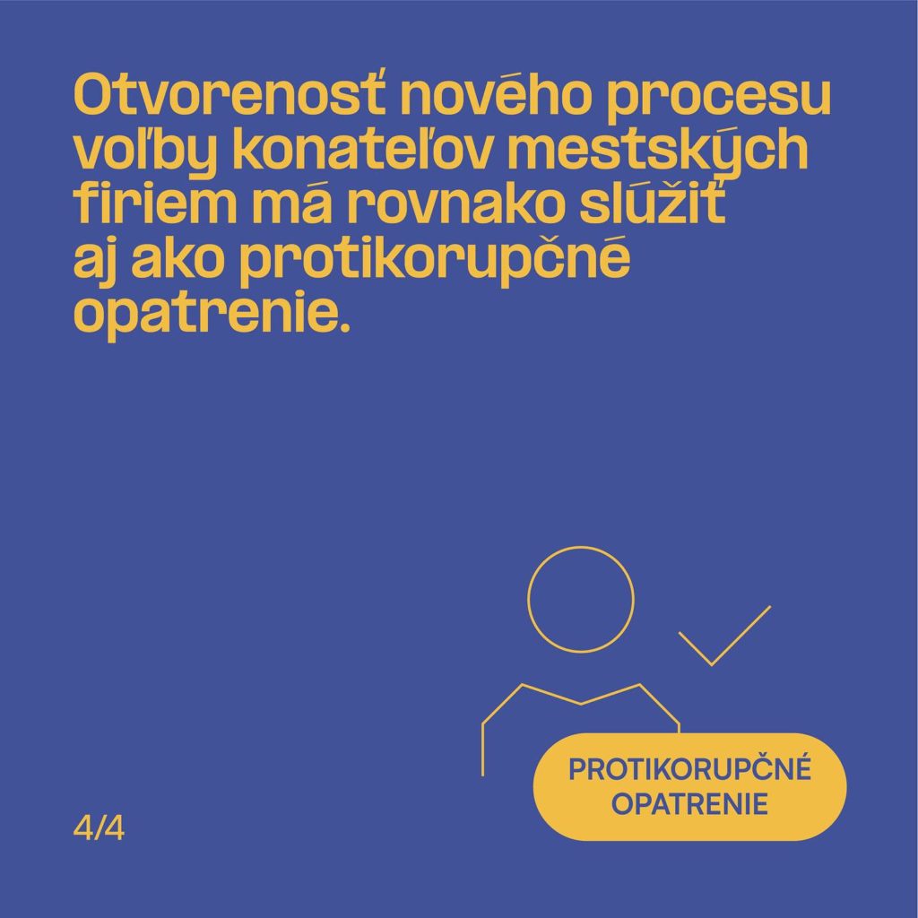 Otvorenosť procesu voči verejnosti má slúžiť aj ako protikorupčné opatrenie. Ako upozornil primátor mesta Prešov František Oľha, neprávne výberové konania môžu viesť až k likvidácii firiem. „Dôležité je vybrať dobrého riaditeľa a nie potom rušiť mestskú spoločnosť,“ uviedol Oľha, podľa ktorého je na tejto metóde dôležité aj to, aby nebolo rozhodnutie na primátorovi, ale aby bol proces pod verejnou kontrolou. Ako dodal, mechanizmus sa snažil presadiť už ako začínajúci poslanec. Vtedy ale nenašiel podporu v mestskom zastupiteľstve.