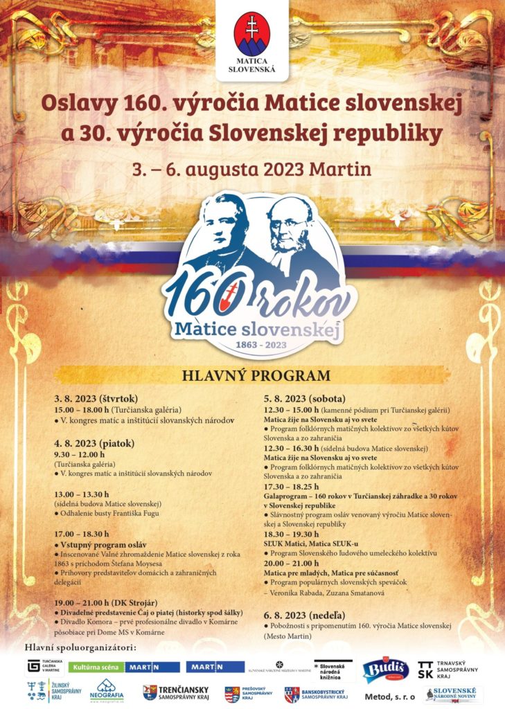 Program osláv výročí Matice slovenskej a vzniku Slovenskej republiky sa začne vo štvrtok, kedy sa uskutoční V. kongres matíc a inštitúcií slovanských národov, ktorý bude pokračovať aj ďalší deň. V piatok odhalia po rokovaniach bustu Františka Fugu a neskôr je pripravený vstupný program osláv.