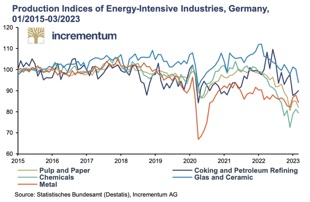 Vojna v kombinácii so zásadnými chybami v energetickej politike vedú k úteku energeticky náročnejších sektorov priemyslu a deindustrializácii Nemecka.