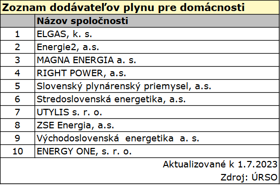 Dodávatelia energií sú povinní podať príslušné návrhy cien za dodávku plynu, respektíve elektriny zraniteľným odberateľom na rok 2024 do konca októbra tohto roka. Urobia tak po tom, ako im ÚRSO vydá cenové rozhodnutia. „Zverejniť ceny za dodávku plynu a elektriny pre domácnosti na rok 2024 majú najneskôr 30 dní pred ich účinnosťou, čiže najneskôr začiatkom decembra,“ dodáva Šebesta s informáciou, že sa to týka aj prípadných cenových produktov SPP na rok 2024, ktoré sa budú odvíjať od rozhodnutí ÚRSO, resp. od prípadných ďalších prijatých opatrení na úrovni vlády SR.