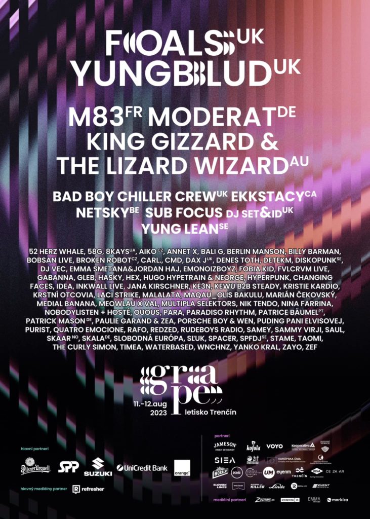 Nezmeškajte 13. ročník festivalu Grape, ktorý bude výnimočný nielen vďaka hudobným vystúpeniam, ale aj jedinečným zážitkom, ktoré vám ponúkne. Tento rok sa na pódiu vystriedajú špičkoví interpreti súčasnej československej, ale aj svetovej hudobnej scény. Nájdete medzi nimi mená ako Foals, Yungblud, M83, Moderat, King Gizzard & The Lizard Wizard, Annet X, NobodyListen, Nik Tendo, Samey, Paulie Garand & Zea, Zayo, Emma Smetana & Jordan Haj, Para, Jana Kirschner a mnoho ďalších.