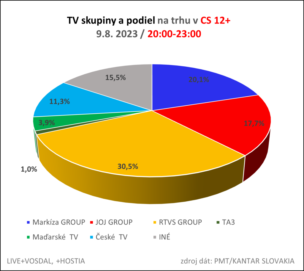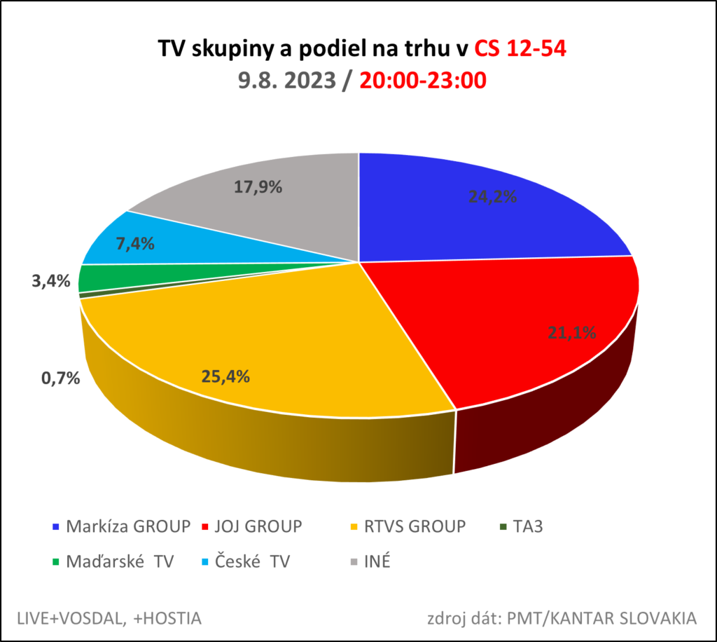 V komerčnej cieľovke si futbal zarezervoval hneď tri najvyššie priečky. Najlepší výsledok si s ratingom 5,3 percenta a podielom na trhu 21,7 percenta pripísal druhý polčas zápasu Slovan Bratislava - Maccabi Haifa. Prvý polčas skončil s ratingom 5,1 percenta a podielom na trhu 18,3 percenta a futbalovú fazónu komerčného rebríčka večera dotvára z tretej priečky futbalové štúdio po prvom polčase s ratingom 4,2 percenta a podielom na trhu 15 percent. Až na štvrtej priečke sa umiestnil prvý nefutbalový formát. Česká komédia Ženy v běhu si pripísala rating 3,8 percenta a podiel na trhu 14,9 percenta.