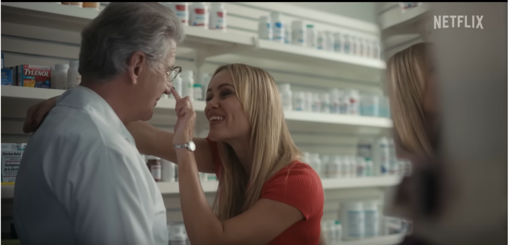 Oproti týmto dvom pozitívnym postavám stoja dve z opačnej strany barikády. Herečka znázorňujúca obchodnú zástupkyňu farmaceutickej firmy vám pravdepodobne bude niekoho pripomínať. Dcéra dvoch hollywoodskych hviezd hrá naivnú Shannon Shaefferovú, ktorá sa pre nešťastnú domácu situáciu pridá medzi zástupkyne farmaceutickej firmy. Malibu Barbíny, ako ich nazýva hlavná postava Edie Flowersová, na športových autách navštevujú lekárov a rôznymi spôsobmi ich presviedčajú, aby predpisovali Oxycontin.
