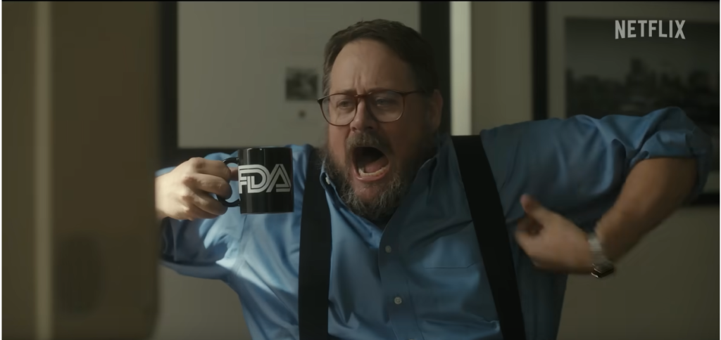 Aj výskumníci a štátni úradníci čelia ťažkým rozhodnutiam. Ďalšou dôležitou súčasťou seriálu je pohľad do zákulisia FDA, vládnej agentúry, ktorá v USA dáva povolenia na vstup liekov na trh. Keď úradník agentúry uvedenie Oxycontinu zablokuje, firma Purdue vyvinie niekoľko stratégií, aby ho presvedčila. Po niekoľkých neúspešných pokusoch zaberie kombinácia peniaze plus ego a Oxycontin je na trhu. Napriek tomu, že stojí na pochybných výskumoch.