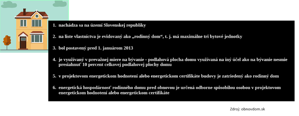 Oprávneným žiadateľom je fyzická osoba, ktorá je občanom členského štátu EÚ. Okrem toho musíte byť spôsobilý na právne úkony a vlastniť rodinný dom, na ktorého obnovu majú byť finančné prostriedky použité. Môžete byť aj bezpodielovým či podielovým vlastníkom. V druhom prípade však nesmie ísť o právnickú osobu, a to ani v prípade, ak o poskytnutie príspevku žiada osoba fyzická. Nikto zo spoluvlastníkov rodinného domu nesmel byť odsúdený za špecifické trestné činy finančného charakteru.