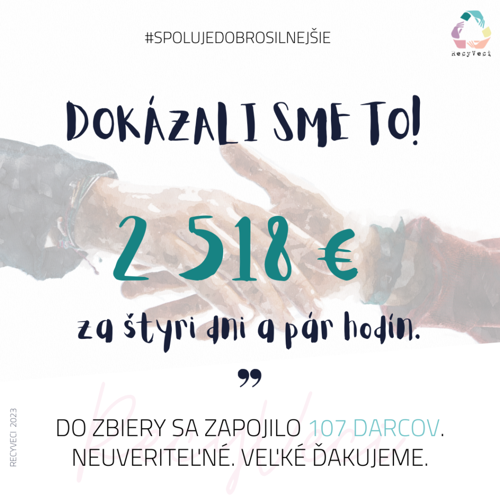 Do dnešného dňa vyzbierali pre rodinu viac ako 2 500 eur vďaka 107 dobrosrdečným darcom. „Koniec bol teda šťastný, rodinku nevysťahovali a RecyVeci, ako sami povedali, im bolo v tejto chvíli mostom pomoci, ktorý ich previedol na druhý, lepší breh a nový začiatok," dodala.