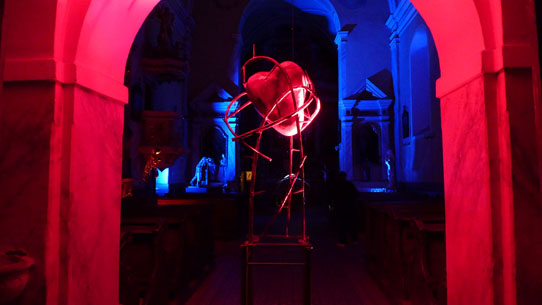 Svojský, no pritom hlboko duchovný rozmer utrpenia vtlačil aj dielu Srdce. Podľa Mončeka sa srdce stalo všeobecným symbolom lásky. Umelec okolo drevenej sochy omotal kovové tŕňové prúty vyjadrujúce „ľudské pohnútky a zranenia, ktoré človek v živote znáša“. Do kompozície a tvaru plastiky premyslenie zahrnul aj základné symboly: trojuholník, štvorec a rybu. „Sú to prazákladné tvary a môžu mať viacero významov. V každom prípade srdce zostáva večným motívom a inšpiráciou pre umelcov, básnikov i vedcov,“ doplnil Monček.