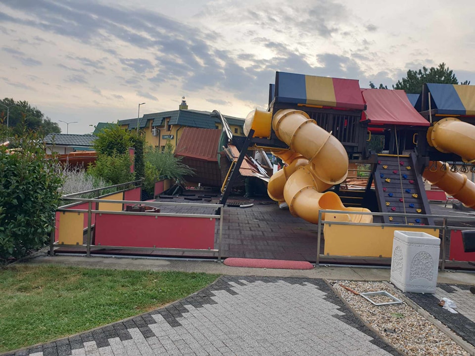 Škody na kúpalisku sú rozsiahle. Strechy bufetov boli strhnuté, stromy vyvrátené a niektoré budovy sú poškodené. Našťastie, v dôsledku búrky nikto neutrpel žiadne vážne zranenia.