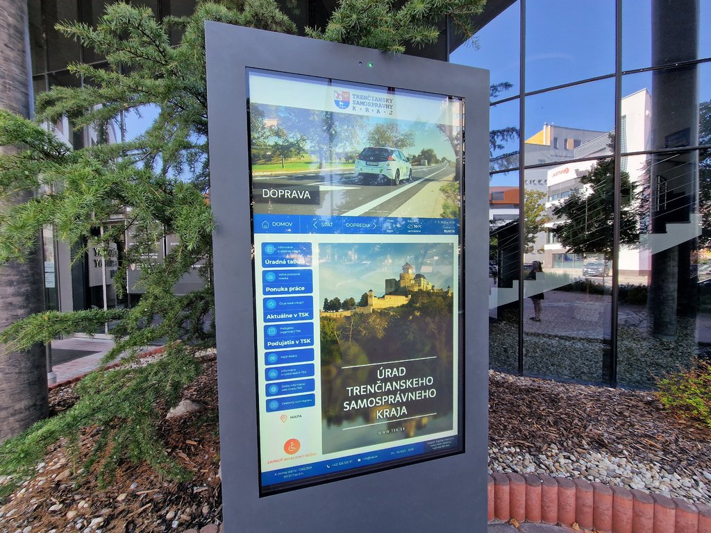 Úradná tabuľa disponuje vlastnou klimatizáciou a kúrením, okrem toho aj senzorom stmievania a odolá teplotám v rozmedzí od -30° do 55° Celzia. Vďaka tejto novinke verejnosť pohodlne vyhľadá zverejnené dokumenty Úradu TSK, novinky na župnej webovej stránke či kultúrne aktivity v kraji. Nechýbajú ani interaktívne mapy, navigácia k turistickým atrakciám a pamiatkam, ale aj cyklotrasy, vyhliadkové trasy a rozhľadne.