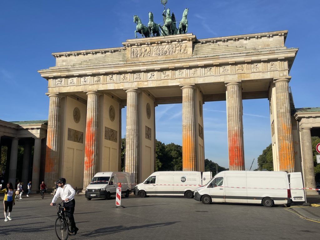 Aktivisti z Poslednej generácie v nedeľu postriekali oranžovou farbou všetkých šesť stĺpov Brandenburskej brány v Berlíne. Na mieste zasahovalo približne 40 príslušníkov bezpečnostných zložiek, zatkli 14 osôb. Úrady začali vyšetrovanie v spojitosti s poškodzovaním verejného majetku.