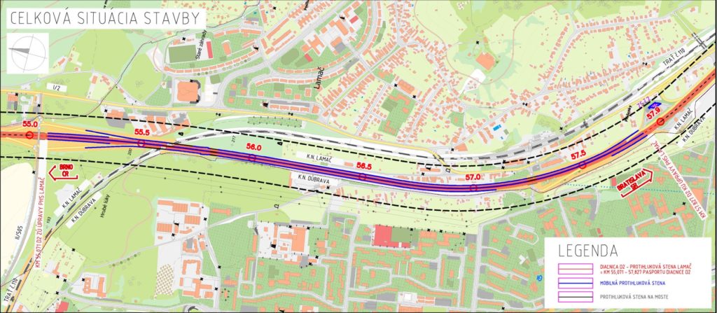 Za výstavbu protihlukovej steny, ktorá má znížiť hluk z diaľnice, priamo obťažujúci obyvateľov Lamača, bojovala miestna samospráva roky. O forme mobilnej bariéry sa hovorilo už dlhšie, viackrát sa posúval predpokladaný termín výstavby v dôsledku predlžovania povoľovacích procesov a riešenia námietok voči forme realizácie protihlukovej steny i dosahu na životné prostredie.