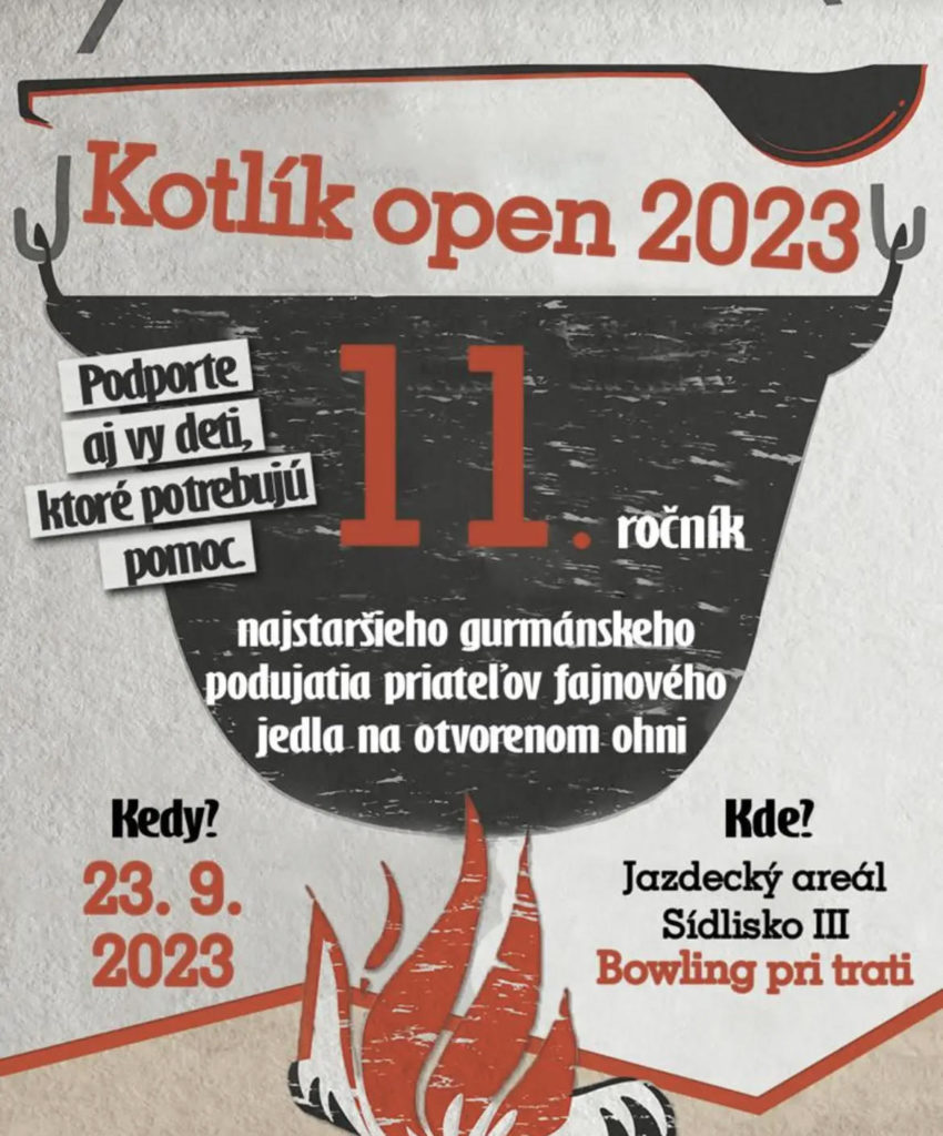 V sobotu sa môžete zúčastniť súťaže vo varení na otvorenom ohni. Svojou účasťou zároveň podporíte dobrú vec. Ide o dobročinné podujatie KOTLÍK OPEN, pri ktorom od rána budú variť na otvorenom ohni prihlásené družstvá. Navarené dobroty si môžete potom kúpiť za symbolickú cenu 2,5 eura. Výťažok poputuje na Detské oddelenie FNsP Prešov, Občianske združenie Deťom pre život zaoberajúce sa pomocou pre deti s onkologickými chorobami a Občianske združenie Priatelia sluchovo postihnutých detí, ktoré sa stará o rečovo a sluchovo postihnuté deti.