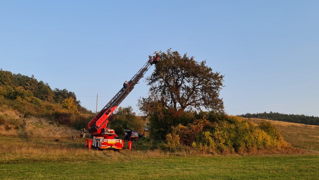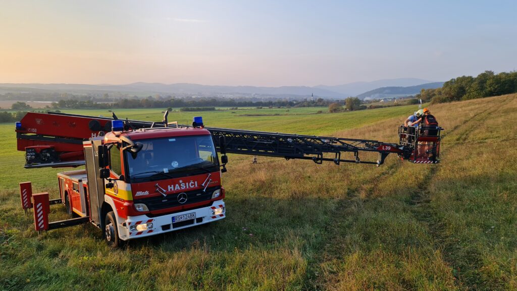 Paraglajdistka skončila na strome pod hradom, ratovali ju hasiči s plošinou