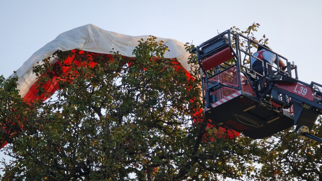 Mladá paraglajdistka musela čakať v korune stromu niekoľko desiatok minút, kým na miesto prišli hasiči s vysokozdvižnou plošinou a odpílili zopár konárov, ktoré prekážali v prístupe. Potom sa im podarilo športovkyňu bezpečne dostať na zem. Pozitívnou správou je, že pri neželanom pristátí na strome neutrpela žiadne zranenia.
