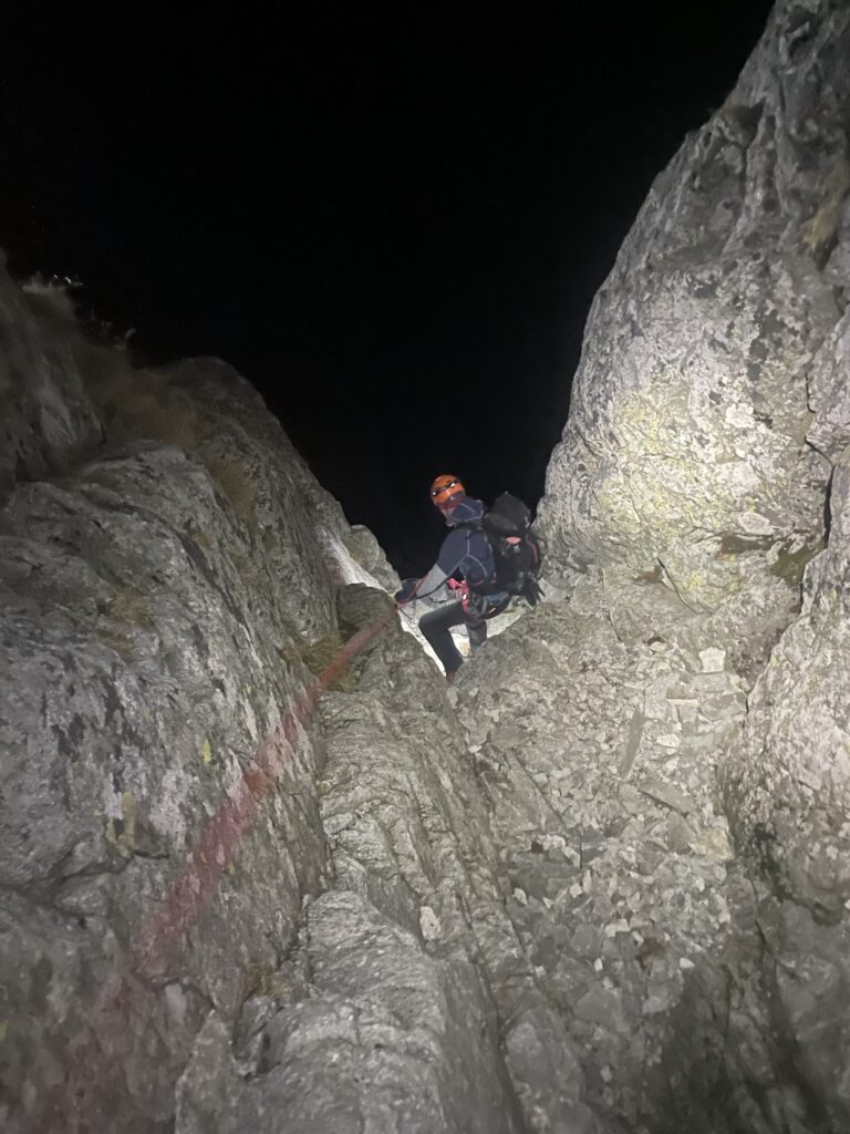 Záchranári HZS s dvojicou žien a jedným mužom s pomocou istenia na krátkom lane vystúpili na Zadný Gerlach, zostúpili do Tetmajerovho sedla a začali zostupovať „Gipsyho feratou“ do Velickej doliny. Počas prebiehajúcej záchrannej akcie, už po zotmení, kontaktovala tiesňovú linku dvojica horolezcov – muž a žena, ktorí zostupovali do doliny samostatne. Počas zostupu sa však dostali nad skalný prah, odkiaľ už neboli schopní pokračovať ďalej. Záchranári, ktorí zostupovali s ich spolulezcami, zišli s nimi najprv do doliny, kde ich odovzdali kolegom a vrátili sa po uviaznutú dvojicu. Vzhľadom na komplikovaný terén, v ktorom sa dvojica nachádzala, museli záchranári opäť vystúpiť na hrebeň. „Poľských horolezcov medzitým navigovali vo výstupe žľabom. S pomocou istenia lanovou technikou s nimi za nepriaznivých poveternostných podmienok zostupovali rovnakou trasou do Velickej doliny a ďalej na Sliezsky dom,“ dodáva HZS.