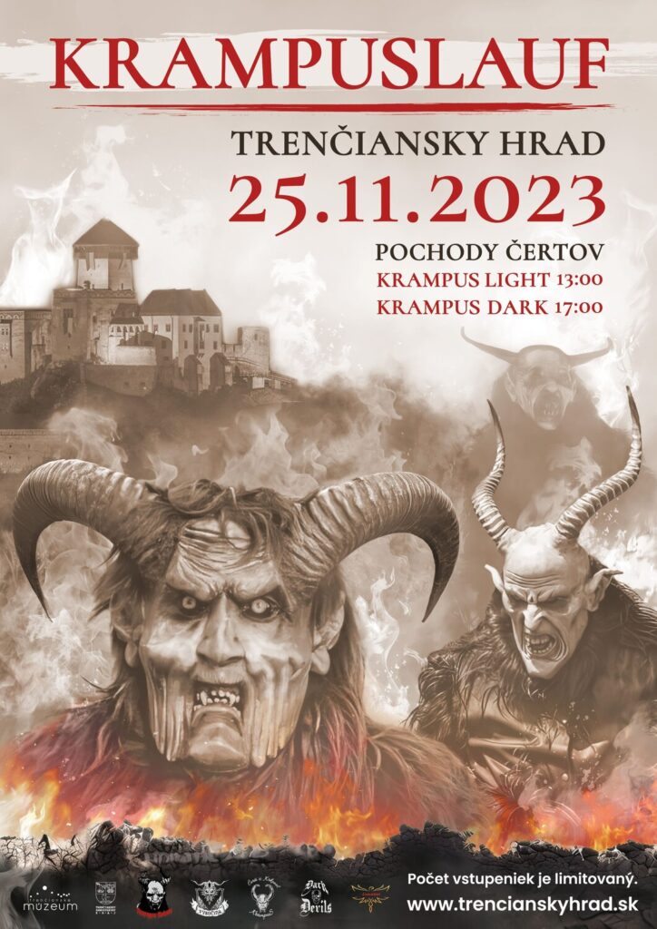 Tento rok bude na hrade krampusácky pochod plný úchvatných masiek, dymovníc, ohňa, plameňometov, svetiel a hlasnej hudby. Na predstavenie skupín KRAMPUS REBELS, KRAMPUS VYSOČINA, ČERTI Z KRKONOŠ, LUMATOAL a DARK DEVILS s plameňometmi len tak ľahko nezabudnete.
