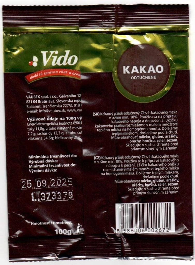 Výsledky testovania stogramového odtučneného kakaa z Indonézie, dodávaného budapeštianskou firmou Tarcha World Kft, preukázali prekročené množstvo benzo(a)pyrénu vo výške 27,8 µg/kg (limit 5 µg/kg) a PAU vo výške 151,2 µg/kg (limit 30 µg/kg). Inšpektori na základe týchto zistení rozhodli o stiahnutí nevyhovujúceho výrobku z trhu. Dátum minimálnej trvanlivosti tejto vzorky je do 25. septembra 2025, číslo šarže L.373379.