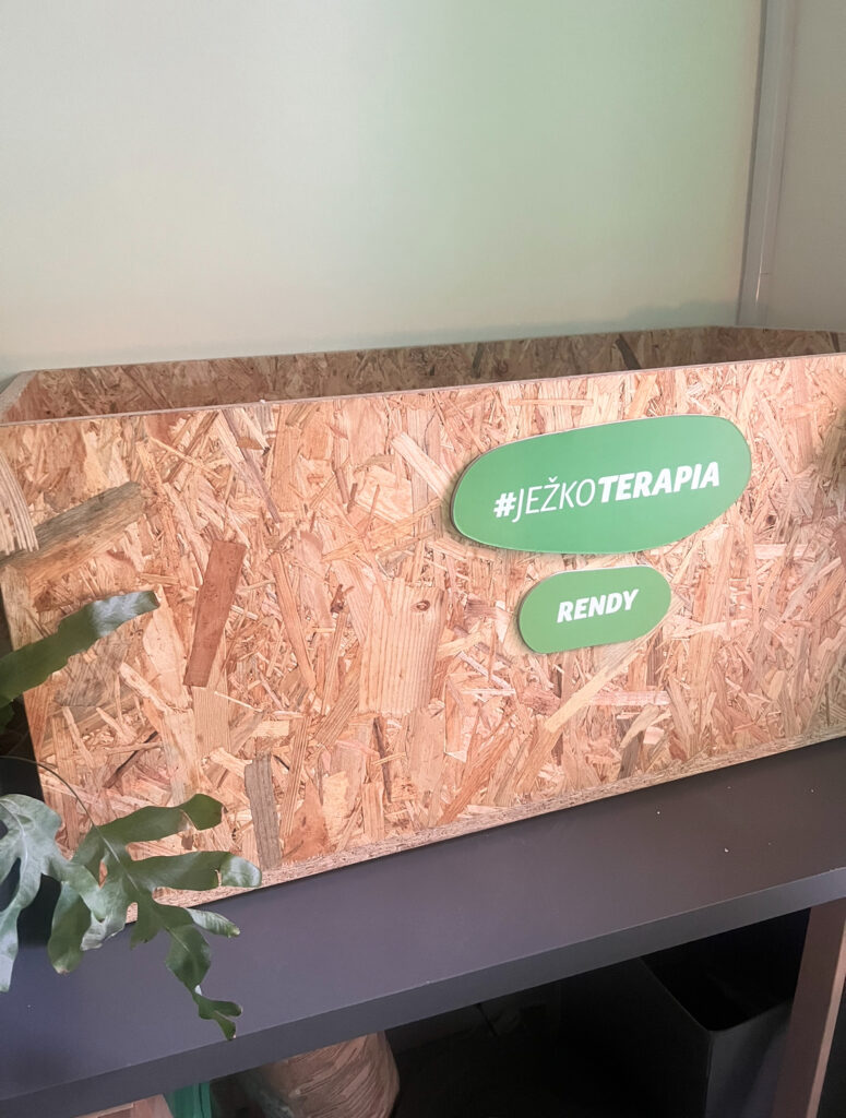 Ježko, ktorý robí v Prešove terapeuta, sa volá Rendy. Do klubu prišiel ako 5-mesačný, po odbornom výcviku v Bratislave. Po ňom bol pripravený na kontakt s ľuďmi. „Dnes má už cez rok. Je z chovateľskej stanice zo Slovenska, ktorá sa špecializuje na chov terapeutických ježkov. Pre terapiu je vhodný len jeden z tisíca ježkov,” vysvetlila vedúca Káčka Lenka Kvašnáková.