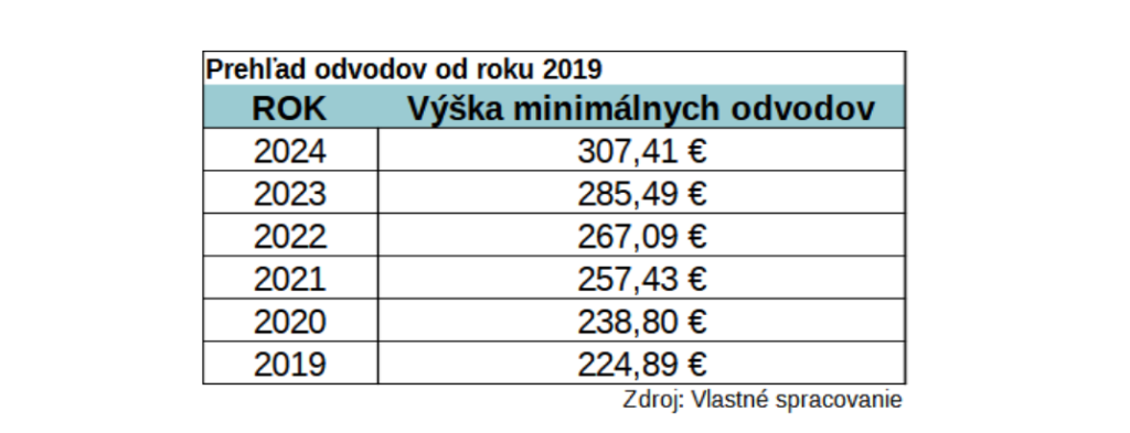 Minimálne odvody od roku 2019, keď boli vo výške 224,89 eura, tak do budúceho roka stúpnu o takmer 37 percent. Zvyšovali sa každým rokom, avšak aktuálny nárast je v rámci sledovaného obdobia medziročne najvyšším.