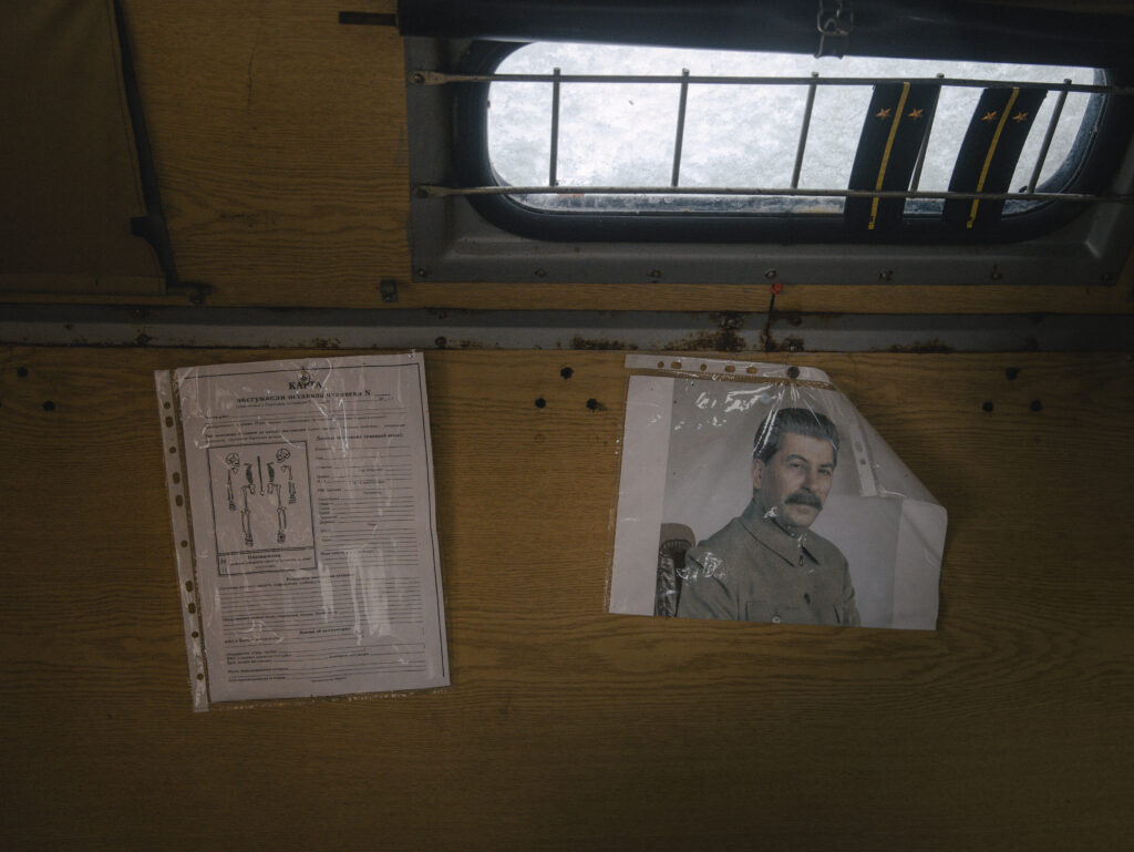 Čiernobiele fotografie z prvých výprav Dobrovolského v 80. rokoch 20. storočia ukazujú hromady kostí v bývalých zákopoch, ktoré ležia priamo na ich povrchu, kde boli opustené.