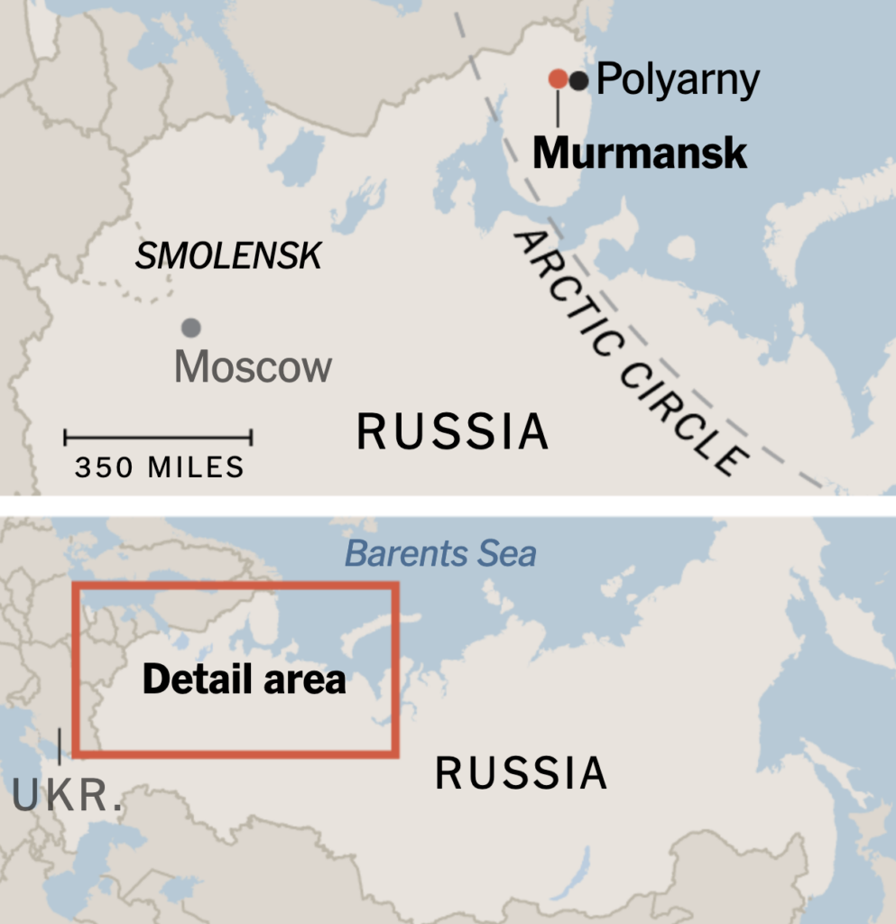 „Dnes v rámci špeciálnej vojenskej operácie" – ako Kremeľ označuje vojnu na Ukrajine – „chlapci opäť bránia našu krajinu a našich ľudí, pričom bojujú proti nacizmu," povedal minulý mesiac gubernátor Murmanskej oblasti Andrej V. Čibis na slávnostnom pochovávaní pozostatkov vojakov z druhej svetovej vojny, ktoré sa každoročne uskutočňuje v bývalých frontových oblastiach.