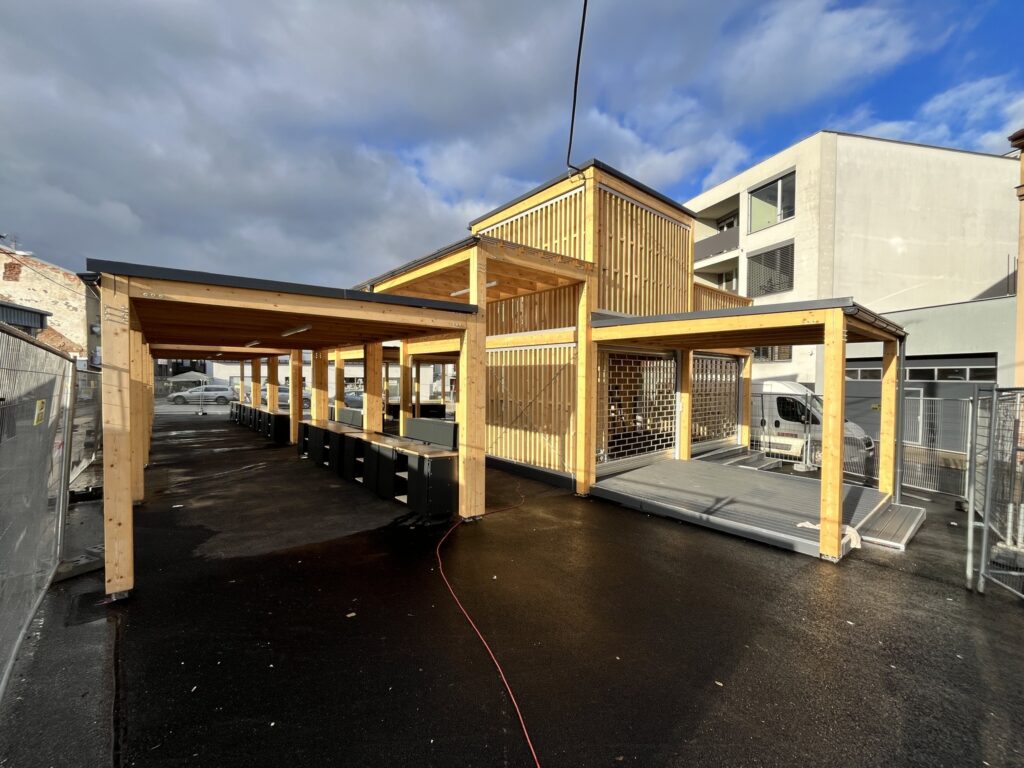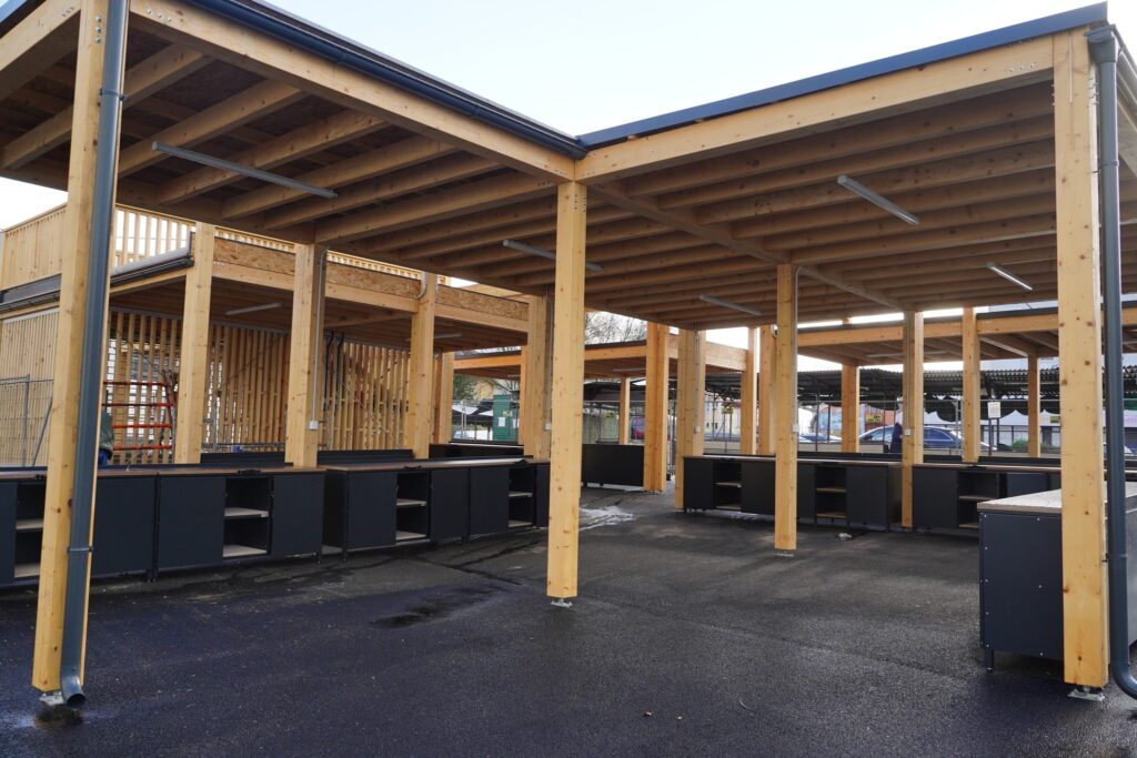 Súčasťou každého stánku sú dva kovové predajné pulty, z odolnej oceľovej konštrukcie, s uzamykateľným priestorom a výškovo nastaviteľnými nožičkami. Výhodou je, že celé trhovisko je zastrešené, čo predajcovia a nakupujúci ocenia najmä v menej priaznivom počasí.