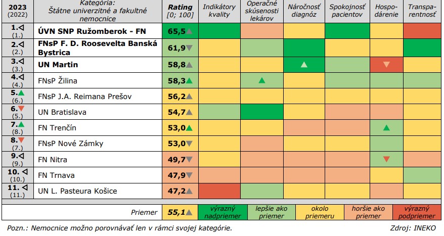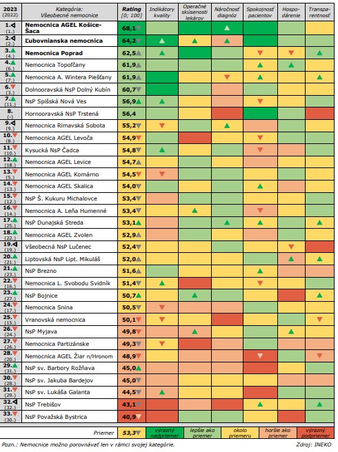 Ktoré slovenské nemocnice sú najlepšie? Analytici z inštitútu INEKO zverejnili ich rebríčky