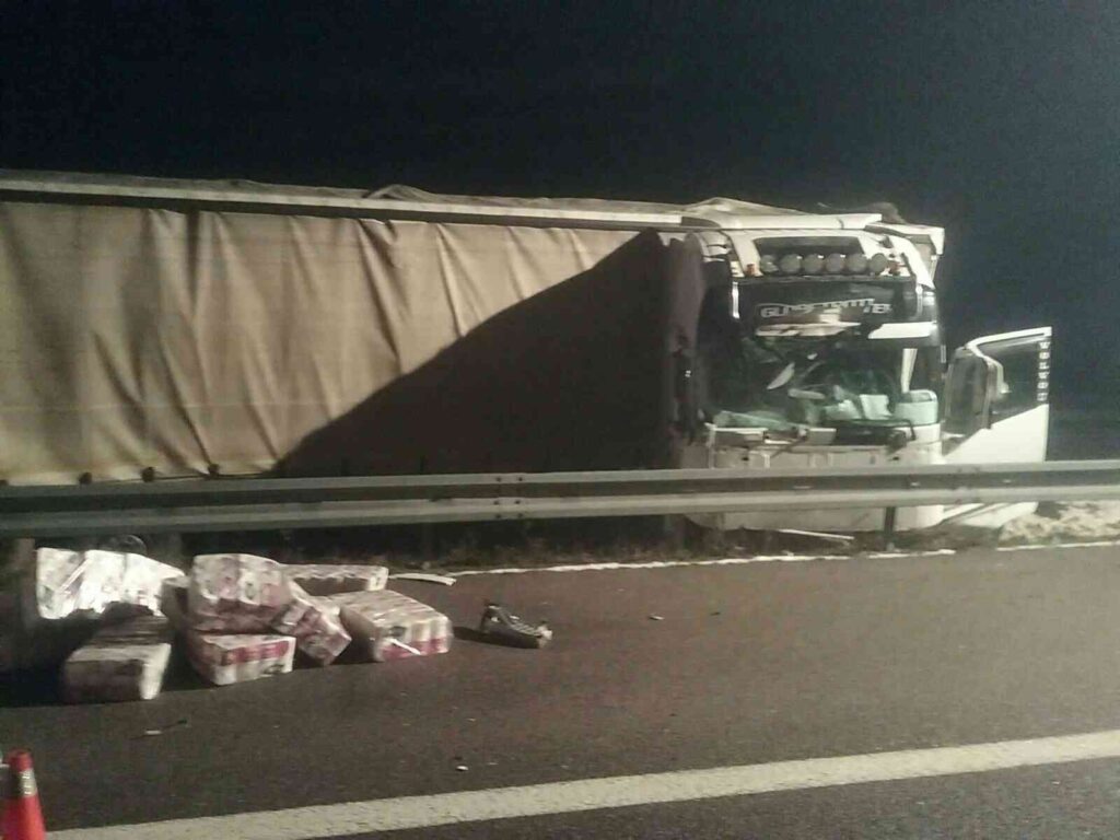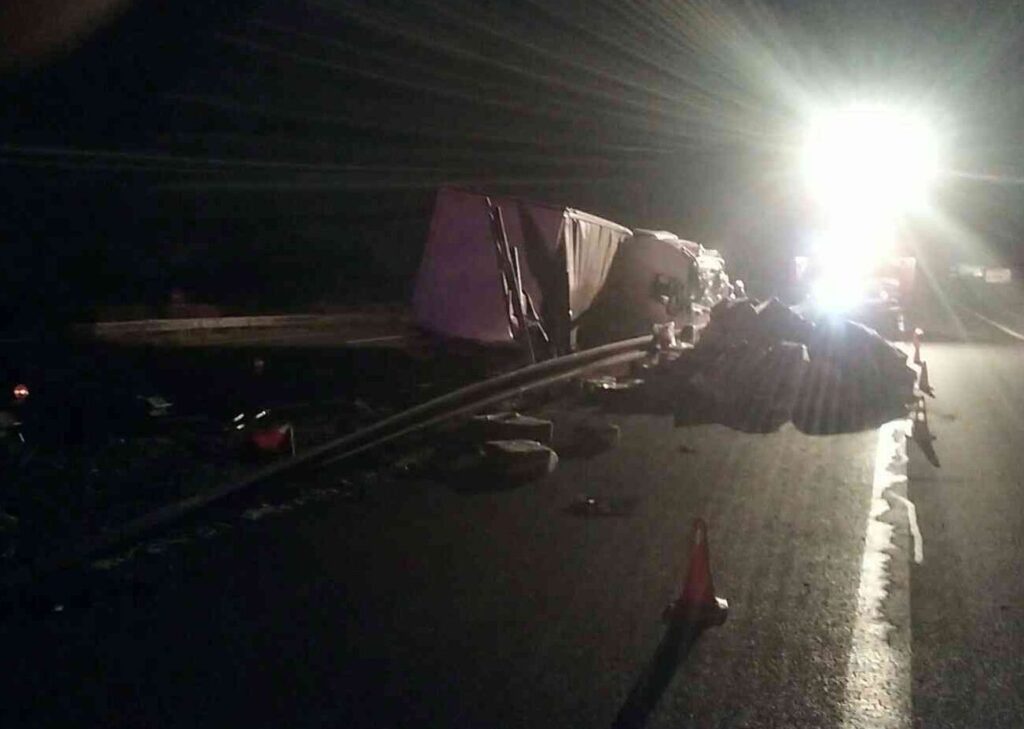 Po príchode zistili, že kamión zostal po prerazení zvodidiel so zalomenou kabínou uviaznutý medzi odstavným pruhom a výjazdom z diaľnice. Havarované vozidlo malo v dôsledku udalosti poškodenú prednú a pravú stranu návesu. Na ťahači bola prerazená palivová nádrž, z ktorej vytekali prevádzkové kvapaliny.