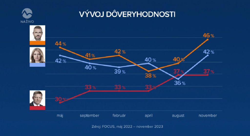 Predseda SNS Andrej Danko požíva dôveru u 30 percent opýtaných, naopak, nedôveru vzbudzuje u 67 percent ľudí, ktorí odpovedali. Nasledujú líder PS Michal Šimečka, ktorému dôveruje 27 percent a nedôveruje 65 percent ľudí a líder hnutia Republika Milan Uhrík, ktorého dôvera u opýtaných dosiahla 26 percent a nedôvera 65 percent.