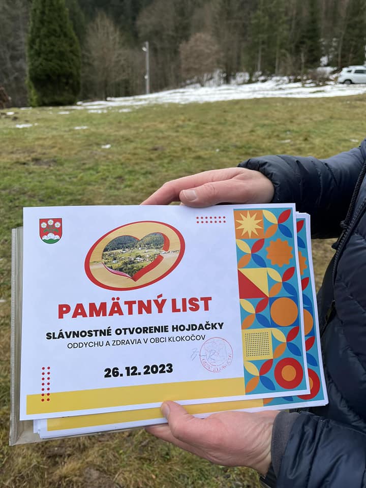 Myšlienka hojdačky v prírode starostu tak očarila, že neváhal a dal jednu postaviť. Slávnostne ju uviedli do života obce 26. 12. v rámci Štefanského výstupu za prítomnosti občanov Klokočova, turistov z Kysúc ale aj vzácnych hostí.