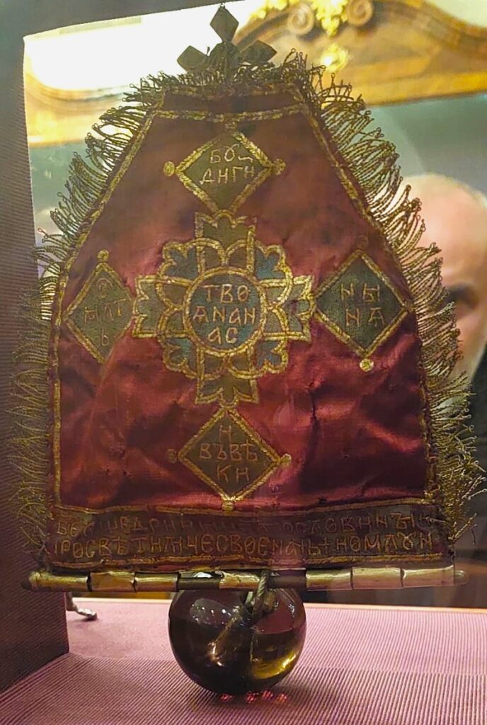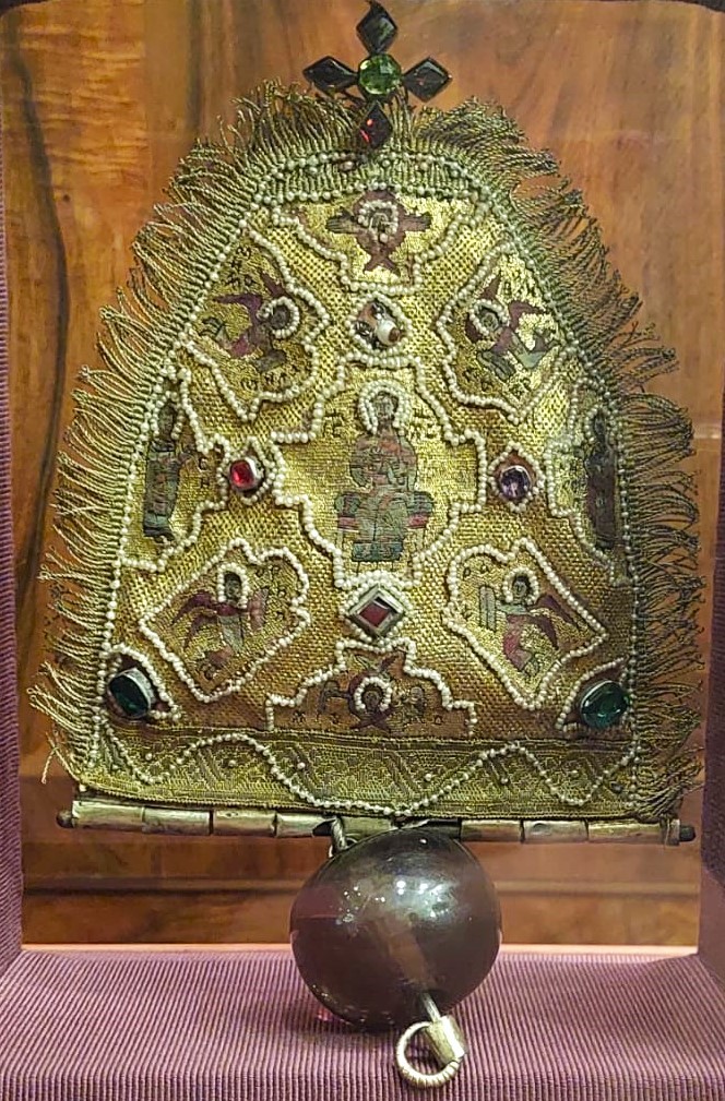Mešec svätého Štefana s cyrilskými nápismi, 11. storočie, Viedeň, Cisárska pokladnica. Foto: Autor.