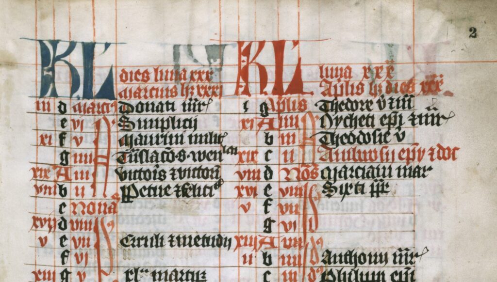 Sviatok svätého Cyrila a Metoda v Spišskom kalendáriu zo 14. storočia sa pripomínal 9. marca. Ľavý stĺpec predposledný riadok. Foto: Archív autora.