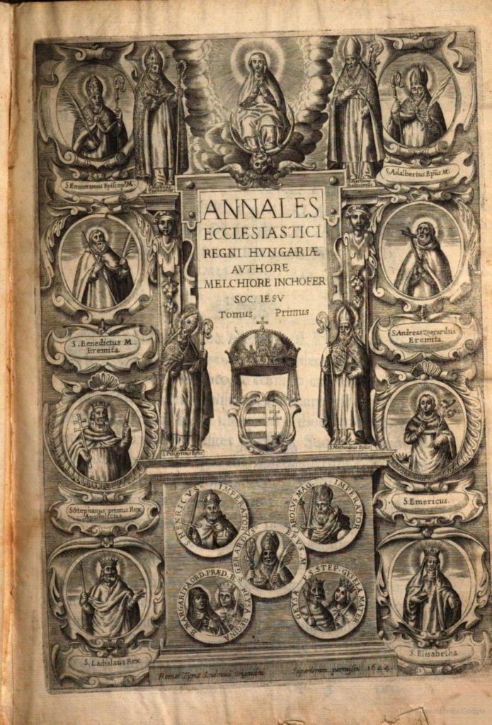 Frontspis v Cirkevných análoch Uhorského kráľovstva z roku 1644 so svätým Metodom, ako prvým arcibiskupom Panónskej cirkvi. Zdroj: Archív autora.