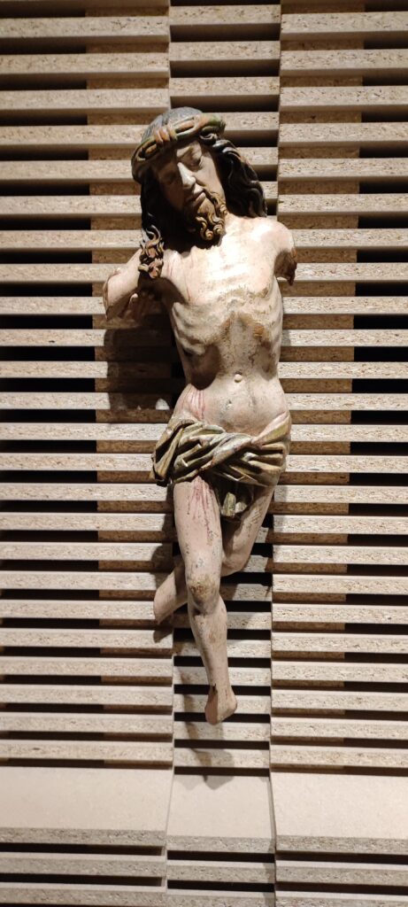 Keď už som začal, tak mi to nedá. Pristavím sa ešte pri výstavách v Pálffyho paláci Galérie mesta Bratislavy. Madony a svätice, subtílne a záhadné tabuľové maľby, pôsobivé – skrátka necelých dvadsať gotických diel sa stali exponátmi reinštalácie a v podstate jedinej stálej expozície GMB. Krása. Ibaže nedokázal som ju vnímať. Pohltila ju silná štruktúra na latky narezanej drevotriesky v pozadí, vytvárajúca kontrastné a prerušované šrafovanie. Ťahalo mi to oči... Stret ušľachtilého a neušľachtilého materiálu nedával zmysel. A hľadám slová, čo na to povedať. Prečo inštalácia, ktorá môže umocniť exponát, ho ubíja? A už dosť dlho, od leta 2021.