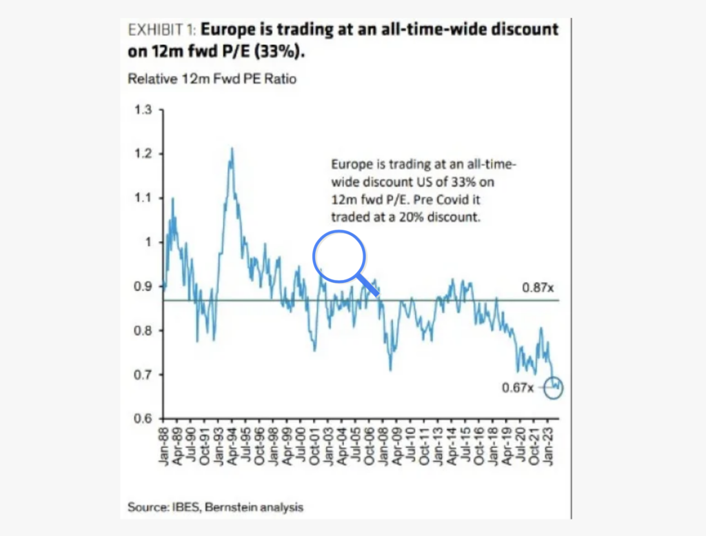 Európske akcie sú pritom už teraz rekordne diskontované oproti americkým. Vyplýva to z porovnania pomeru perspektívnej trhovej ceny akcie a čistého zisku na akciu v horizonte dvanásť mesiacov. Do úvahy sa berú všetky kľúčové akciové tituly v USA aj v Európe.