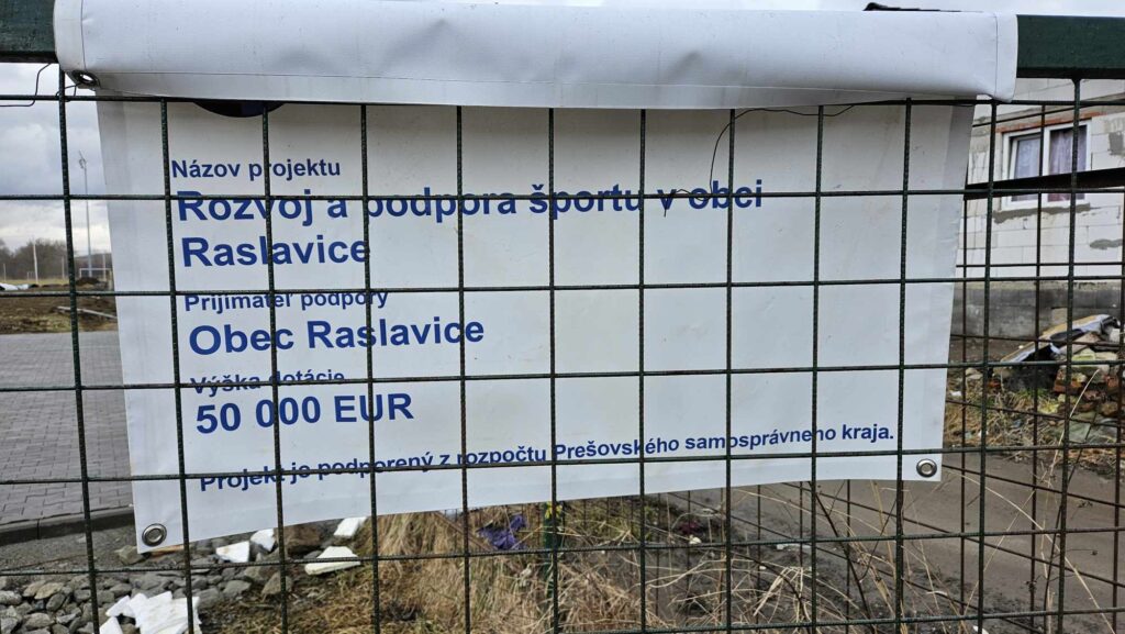 V pondelok (12. 2.) vyvolala táto kauza búrlivú debatu na zasadnutí zastupiteľstva Prešovského samosprávneho kraja. PSK totiž prispelo na stavbu ihriska sumou 50-tisíc eur. Na prípad skolaudovanej stavby, ktorá neexistuje, ako prvý počas víkendu upozornil denník Korzár. Od obyvateľov Raslavíc totiž dostal podnet, v ktorom obyvatelia tvrdili, že žiadne ihrisko nebolo vybudované a fotografie sú len fotomontáž, aby obec neprišla o dotáciu. Okrem PSK na stavbu prispel Fond na podporu športu sumou 211-tisíc eur.