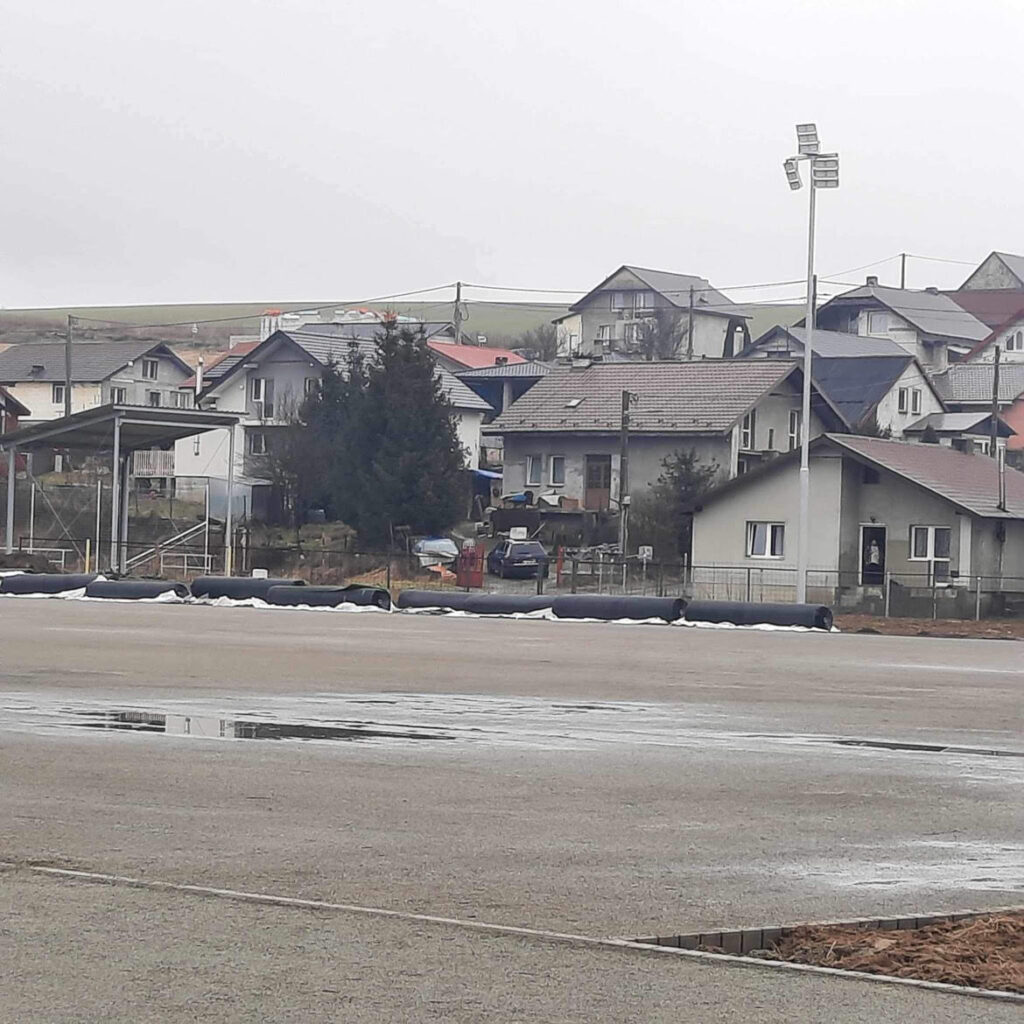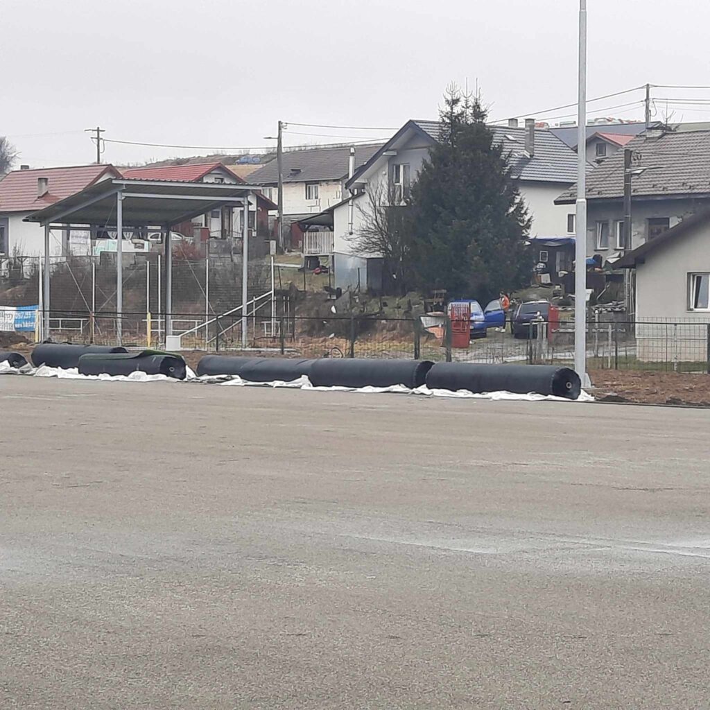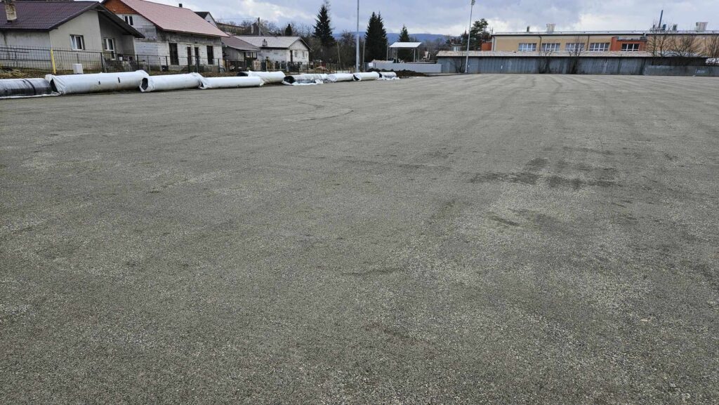 Ihrisko v pondelok zívalo prázdnotou. Okolití obyvatelia postávajúci za plotom budúceho ihriska však prezradili, že ráno boli zrolované balíky s umelým trávnikom odbaľovať chlapi. Ešte v nedeľu (11. 2.) pritom boli starostlivo zabalené do bielej fólie. Aktuálne sú už odbalené.