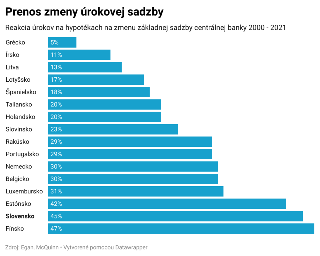 Vysoké postavenie Slovenska v tomto rebríčku by nemalo prekvapiť. Úrokové sadzby na slovenských hypotékach na prelome dekád patrili medzi najnižšie v cele eurozóne. Čo však tieto rozdiely medzi krajinami vysvetľuje?