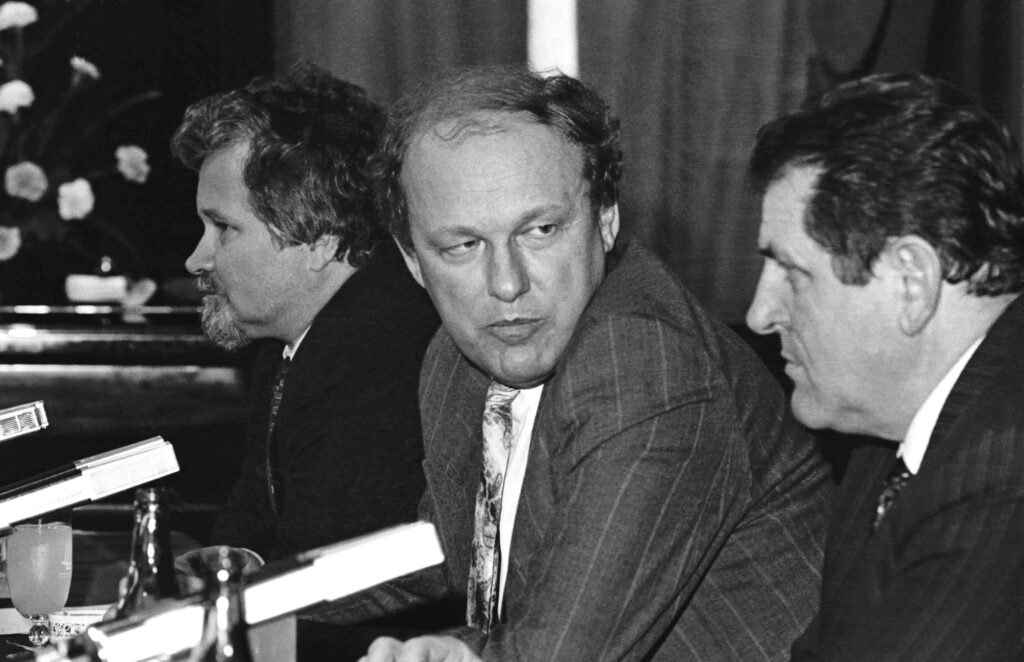 Predsedu vlády Českej socialistickej republiky ( ČSR ) Petra Pitharta (vpravo) prijal 9. februára 1990 v Bratislave predseda vlády Slovenskej socialistickej republiky ( SSR ) Milan Čič . FOTO TASR