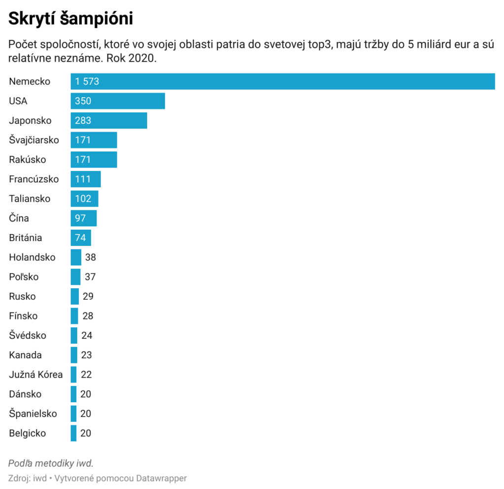 No skutočná sila nemeckého priemyslu sa skrýva v takzvaných „skrytých šampónoch“. Inštitút IWD tak vo svojej analýze označil relatívne neznáme spoločnosti s tržbami do 5 miliárd eur, ktoré zároveň patria do globálnej trojky vo svojom odbore. Vo svete identifikovali 3 400 skrytých šampiónov, z toho 1 600 v Nemecku.