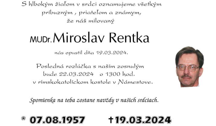 Posledná rozlúčka bude v piatok 22. 3. 2024 o 13:00 v rímskokatolíckom kostole v Námestove.