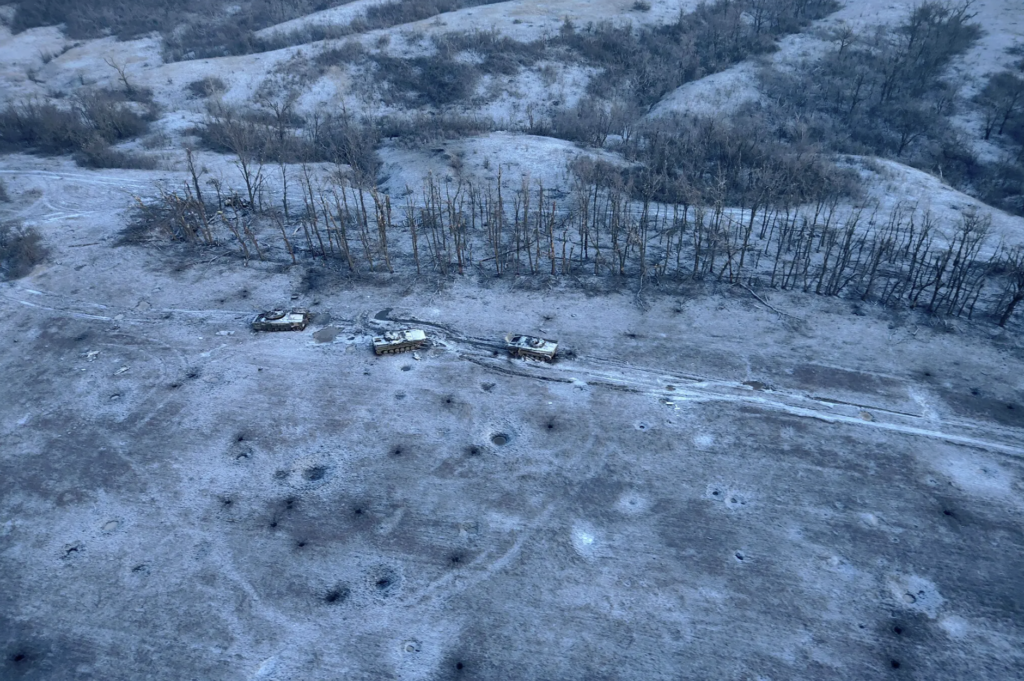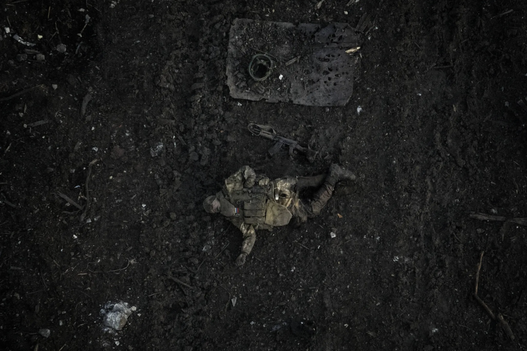 Pri pohľade z dronov nad bojiskami na východnej Ukrajine vidieť ruských vojakov zamrznutých v okamihu ich smrti, nehybne ležiacich na mrazom pokrytých poliach posiatych krátermi. Sú zvalení na strechách vybuchnutých obrnených vozidiel alebo vedľa zničených tankov.