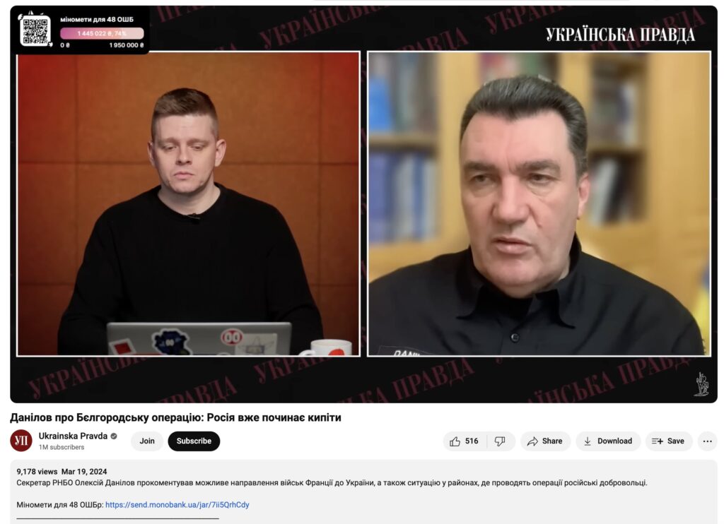 V pôvodnom videu vystupoval Kyrylo Budanov, šéf ukrajinskej vojenskej rozviedky. Časť obrazovky s jeho vstupom však bola nahradená Danilovovým vstupom do iného videa dostupného na YouTube, pričom jeho slová boli údajne umelo pozmenené.