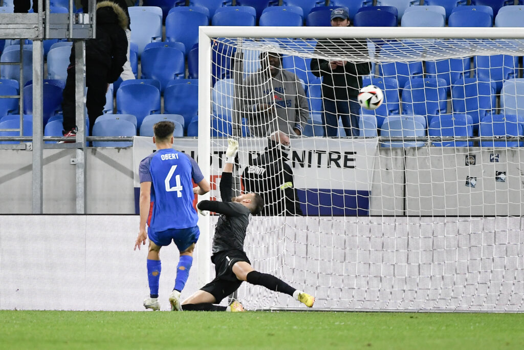 Už po necelých šiestich sekundách musel zo svojej pozície vystúpiť, pretože sa na strelu naprahoval Christoph Baumgartner. Všetko stihol, vypálil, lopta preletela okolo Oberta aj okolo Martina Dúbravku. Neuplynulo ani sedem sekúnd a prehrávali sme 0:1! Nič podobné sa predsa pripravenému a koncentrovanému mužstvu na takejto úrovni nemôže stať.