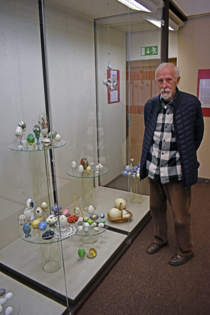 Zdobeniu vajíčok sa Jausch venuje celoročne – i pred Vianocami. Na výstave v Pohronskom múzeu v Novej Bani v týchto dňoch vystavuje aj netradičnú vianočnú kraslicu, ktorá zobrazuje narodenie Ježiša. Dopĺňa ju z dreva vyrezávaná miniatúrna socha svätej rodiny v Betleheme, ktorú si priniesol z viedenských vianočných trhov.