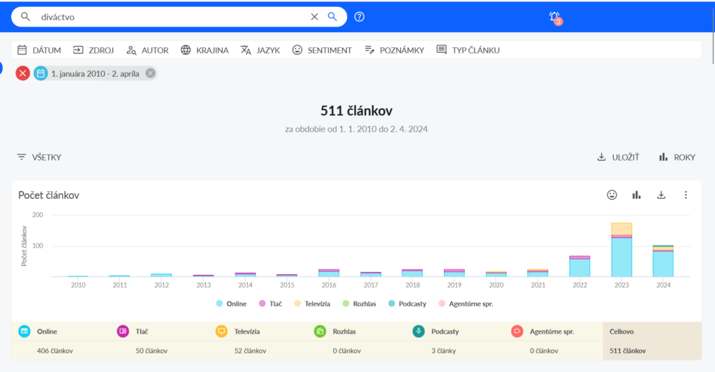 Výskyt slova "diváctvo" v slovenskom mediálnom prostredí. Reprofoto Mediaboard