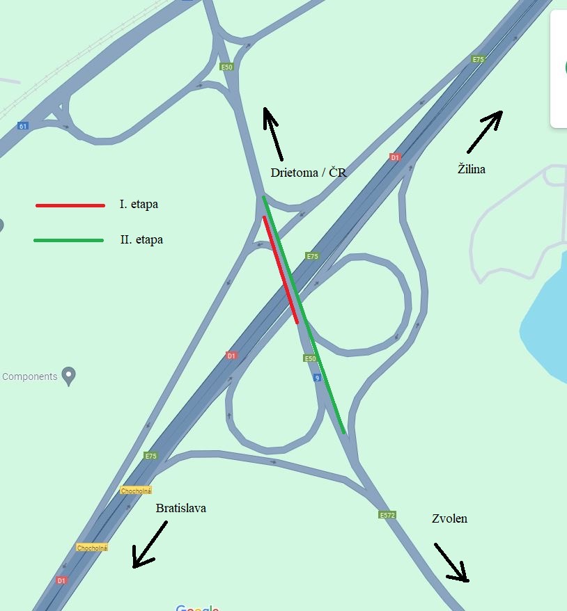 V prvej etape budú diaľničiari pracovať na pravej strane mosta v smere na Trenčín, v druhej etape na ľavej strane mosta v smere na Drietomu. Doprava bude presmerovaná do odbočovacieho pruhu smerom na Bratislavu.