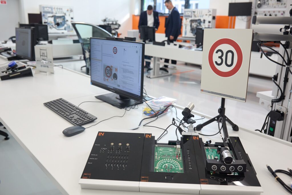 V škole pribudli vysoko špecializované výučbové stroje a zariadenia, na ktorých môžu žiaci simulovať meracie úlohy a ovládanie špecifických častí automobilov, pričom využívajú softvérové e-učebnice. K dispozícii majú tiež model elektromobilu špeciálne upravený na účely vyučovania.