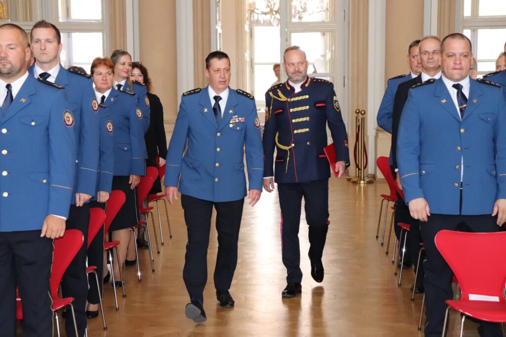 Štrnásť ocenených hasičiek a hasičov si prevzalo medaily III. stupňa za dlhodobé a príkladné plnenie služobných povinností a za svedomitú a obetavú prácu v HaZZ.