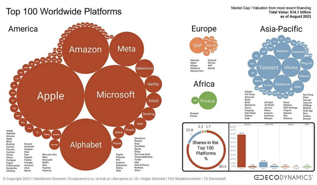 Namiesto „najdynamickejšej a najkonkurencieschopnejšej poznatkovo orientovanej ekonomiky” je Európska únia „regulačnou veľmocou”, kde sa síce neinovuje, ale zato zakazuje to, čo vzniklo inde. Z top 100 svetových technologických platforiem podľa trhovej kapitalizácie sídli v Európe len 2,2 percenta, čo je len o niečo viac ako v Afrike (1,7 percenta).